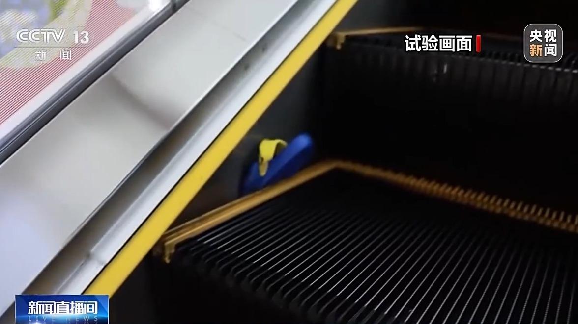 家长带娃去商场,五颜六色的洞洞鞋要特别小心。消防模拟试验显示,把一只“洞洞鞋”贴在扶梯的侧面,鞋子与扶梯侧边产生很大摩擦力,鞋子很快被扶梯侧边的缝隙吸了进去,并且迅速被挤压变形。据介绍,由于洞洞鞋材质较软易变形,且鞋头宽大,更容易靠近扶梯边缘,且与扶梯之间的摩擦力较大,更容易卷进扶梯缝隙。此外,洞洞鞋和扶梯的梳齿板有摩擦,鞋子也容易在上下扶梯时被卡,造成人员绊倒。